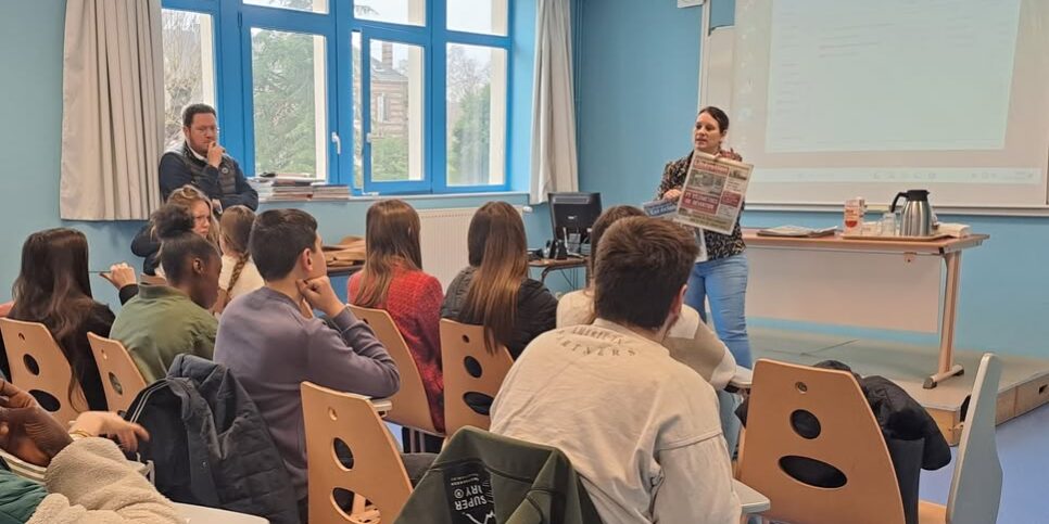 Mar282025ActualitésNon classéUncategorized Semaine de la Presse Une belle rencontre entre nos élèves de Seconde Bac Pro Relations clients – Gestion Administration et Aurore CHABAUD de l’Est Eclair.Échanges et questions ont mis en évidence l’importance de l’information! 28 mars 2025 Author: sr-joseph_2 Post navigationOnglet précédentPrevious post:Journée HandisportNextNext post:PâquesRelated PostsEntrée en Carême18 février 2026Voyage à Paris des élèves de Terminale AGORA13 février 2026Fête de sainte Léonie Aviat7 janvier 2026La neige tombe sur la Cité Aviat ….7 janvier 2026Fête de Noël7 janvier 2026Remise des diplômes session juin 202527 novembre 2025